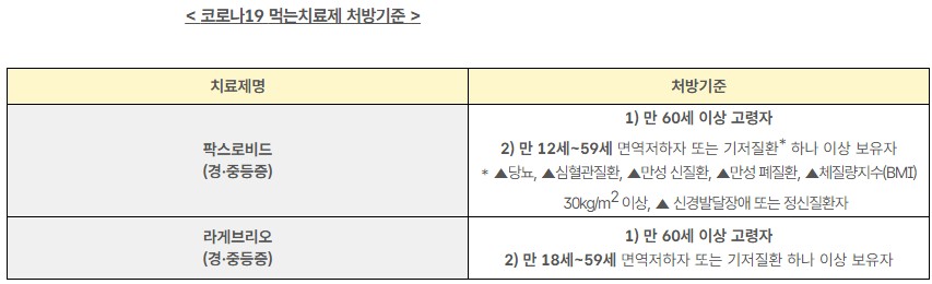 - 의료진에게는 고위험군 위주로 치료제가 처방될 수 있도록 60세 미만 처방기준 준수 협조 당부