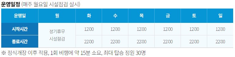 - 운영시간: 화요일 ~ 일요일 12:00 ~ 22:00 (월요일은 정기 점검으로 휴무)
