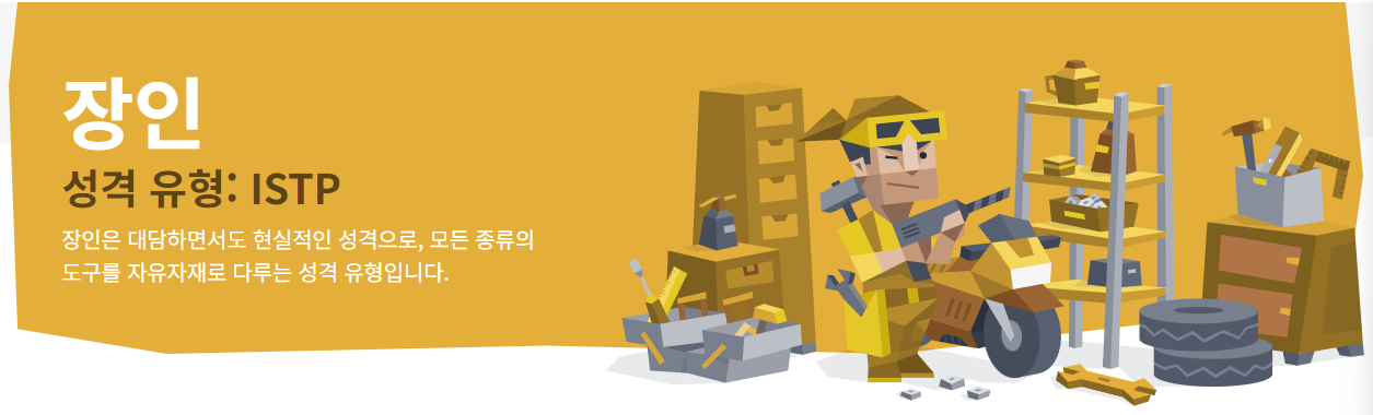 - ISTP: 대담하고 현실적이며, 도구를 다루는 데 능숙한 장인 스타일입니다.