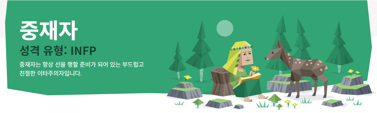 - INFP: 부드럽고 친절하며, 항상 선을 행하려는 이타주의자입니다.