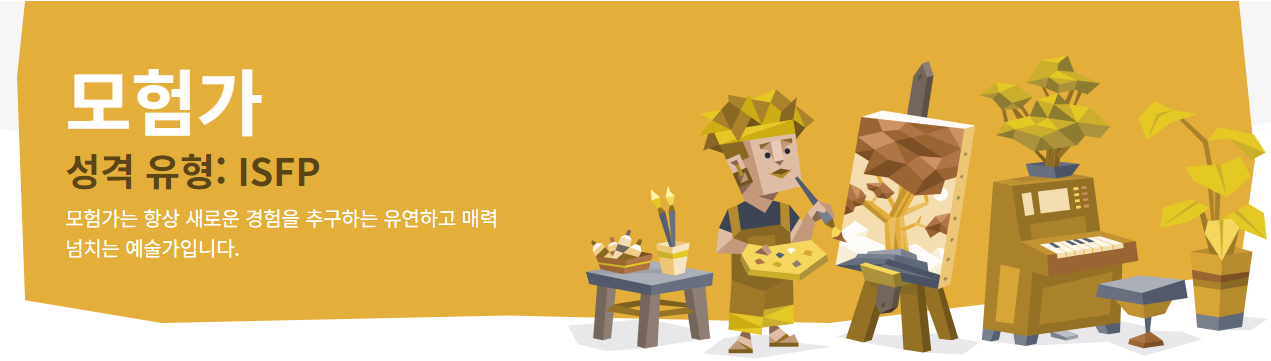 - ISFP: 새로운 경험을 즐기며, 유연하고 매력적인 예술가 성향입니다.