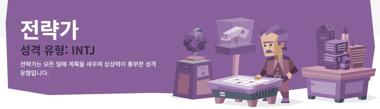 - INTJ: 상상력이 풍부하며, 모든 일에 대해 계획을 세우는 성격입니다.
