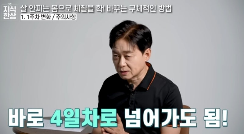 - 박용우 4주 다이어트 루틴의 4주 차에서는 주 3회 간헐적 단식을 시행합니다. 이 단계는 체지방 연소를 마무리하는 시기로, 단식은 연달아 진행하지 않고 하루 간격으로 배치하여 몸에 무리가 가지 않도록 합니다. 단식을 통해 몸은 축적된 지방을 에너지원으로 사용하게 되어 체지방 감소가 극대화됩니다.