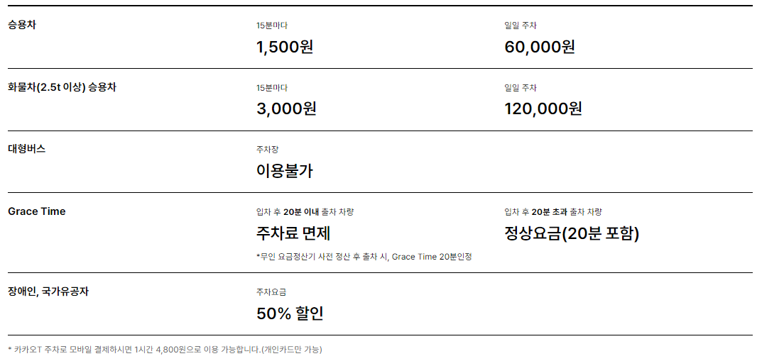 - 주차 시간 관리: 주차 요금은 시간에 비례해 증가하므로 방문 시간을 효율적으로 계획하여 주차 시간을 최소화하는 것이 좋습니다.