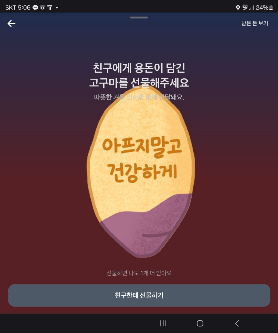 A: 군고구마와 연관된 간단한 미션 형태로 제공되며, 이를 완료하면 용돈을 받을 수 있습니다. - Q: 미션을 통해 얻을 수 있는 보상 금액은 얼마인가요?