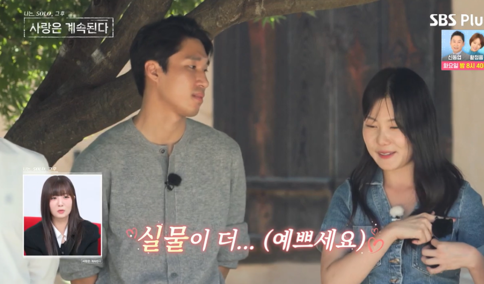 남녀 출연자들이 모여 '나솔사계'식으로 서로 통성명을 진행했습니다. 이 과정에서 첫 번째 남성인 미스터 김이 16기 영자에게 "낯이 익다"며 무뚝뚝한 첫인상과는 다른 플러팅을 시도했습니다.