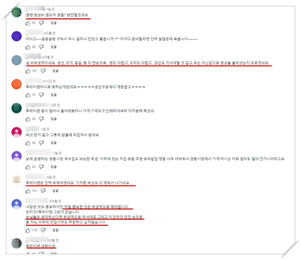 이러한 장면들이 공개되자, 네티즌들은 "프라이팬이 얼마나 더럽길래 하고 봤더니 정말 더럽다", "백종원이 여기 가면 목덜미 잡을 것 같다" 등의 반응을 보이며 우려를 표했습니다.