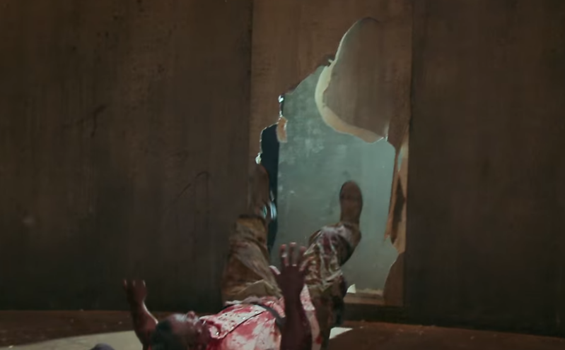 옥상 위에서 생존자들은 간이로 만들어진 줄다리를 필사적으로 흔들며 자신들을 향해 다가오는 좀비들을 아래로 떨어뜨리기 위해 안간힘을 씁니다.
