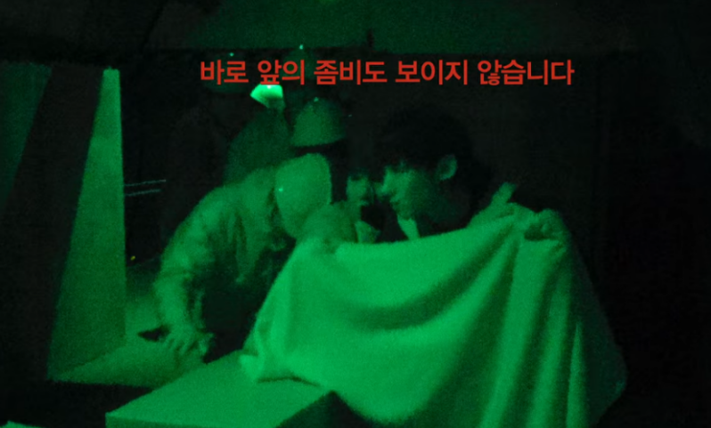 데프콘, 딘딘, 육성재, 권은비, 그리고 나중에 합류한 저스틴은 앞이 잘 보이지 않고 느린 좀비들이 가득한 통로를 통과해야만 하는 위험천만한 미션에 직면합니다.