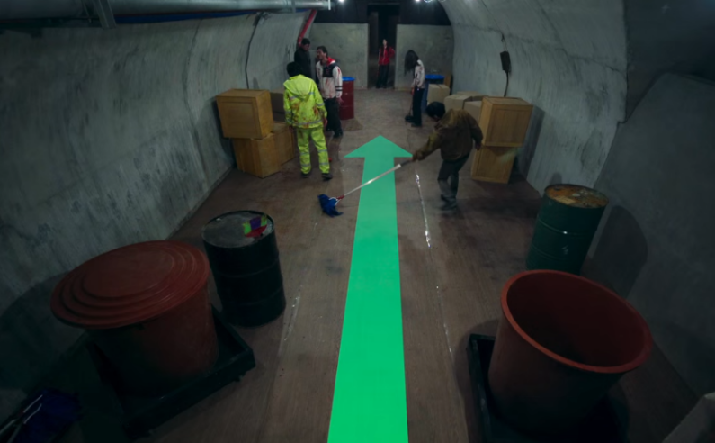 하지만 나머지 피난민들은 두려움에 사로잡혀 움직이지 못하겠다고 버티며 바닥에 드러눕고 맙니다. 상황이 점점 꼬이는 가운데, 일행은 이들을 대야에 담아 마치 휴먼 컬링처럼 반대편으로 보내야 하는 기상천외한 미션을 수행하게 됩니다.