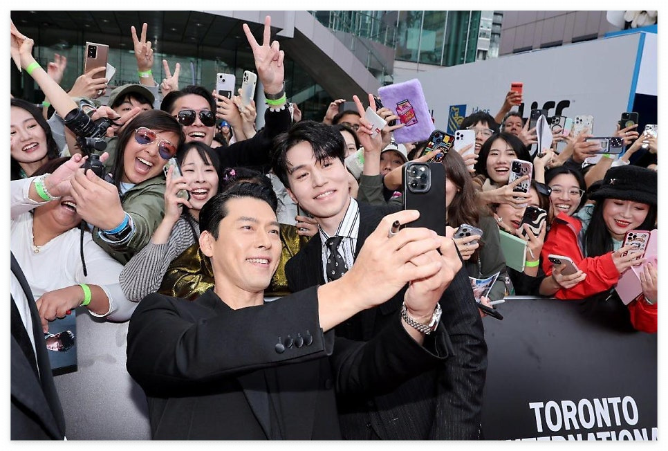 이 사진은 영화 하얼빈 홍보차 방문한 행사장에서 팬들과 함께 찍은 현빈과 이동욱의 셀카로, 두 배우의 예상 밖의 촬영 스타일이 많은 이들의 눈길을 사로잡았는데요.
