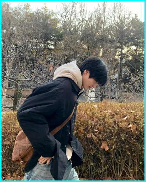 사진 속 변우석은 후드티 모자를 뒤집어쓴 편안한 차림으로 낙엽을 밟으며 여유로운 시간을 보내는 모습이 포착됐는데요. 그의 청량한 비주얼은 마치 남친짤의 정석을 보여주는 듯해 많은 이들의 감탄을 자아냈습니다.