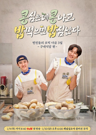 이번엔 밭이 아닌 주방에서 만나볼 이광수와 도경수! 허당끼 넘치는 사장님으로 변신한 이광수와 주방을 책임질 요리사 도경수가 만드는 좌충우돌 구내식당 이야기가 펼쳐진답니다. 밭일에서 보여준 찐친 케미를 이번엔 주방에서 어떻게 보여줄지 기대되지 않나요?