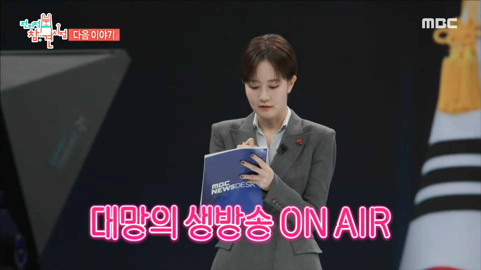방송에 앞서, 김수지 아나운서는 항상 신문과 모니터를 통해 실시간 뉴스를 꼼꼼히 점검하며 준비를 철저히 합니다. 이렇게 긴장감 넘치는 생방송 현장에서 완벽한 진행을 선보이기 위해 최선을 다하고 있죠.