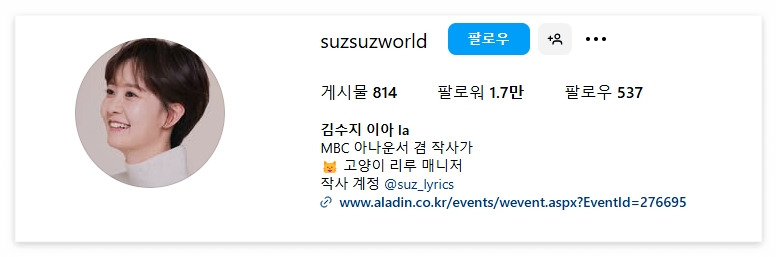 김수지 아나운서 인스타그램: @suzsuzworld
