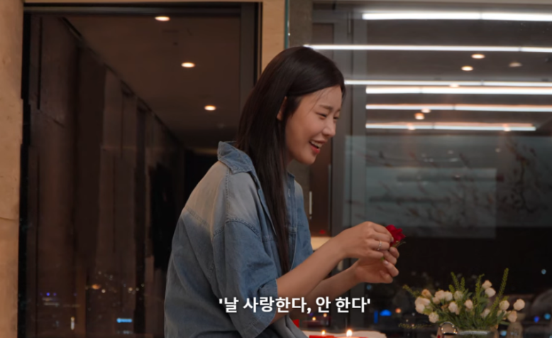 시안은 자쿠지에서 장미 꽃잎을 하나하나 뜯으며 ‘사랑한다, 안 한다’를 반복하며 장난스럽게 놀고 있습니다.