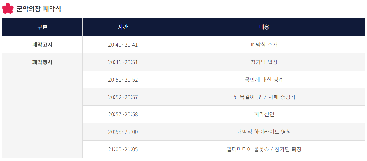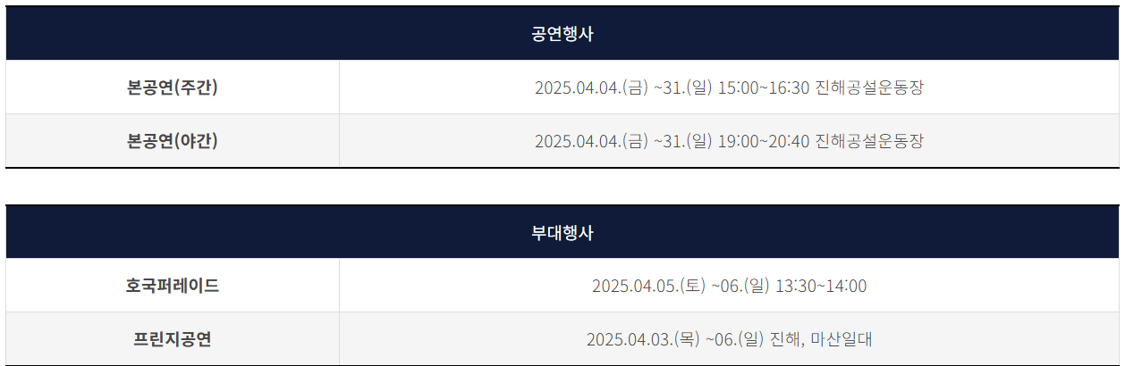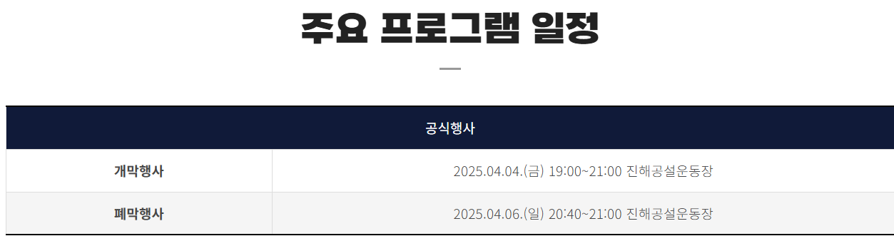 ✔ 개막식 및 전야제 – 3월 28일(금) 18:00, 진해공설운동장