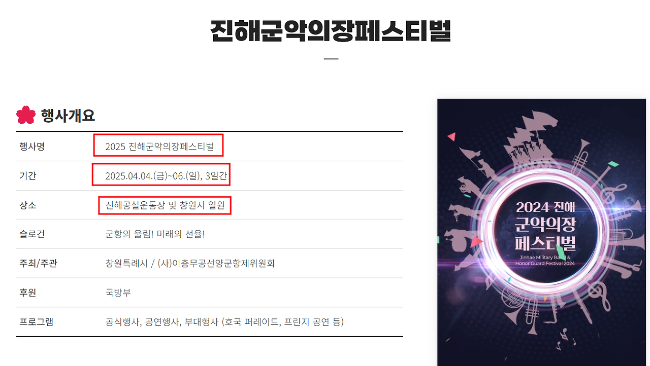 ✔ 진해 군악의장 페스티벌 – 4월 4일(금) ~ 4월 6일(일), 진해공설운동장