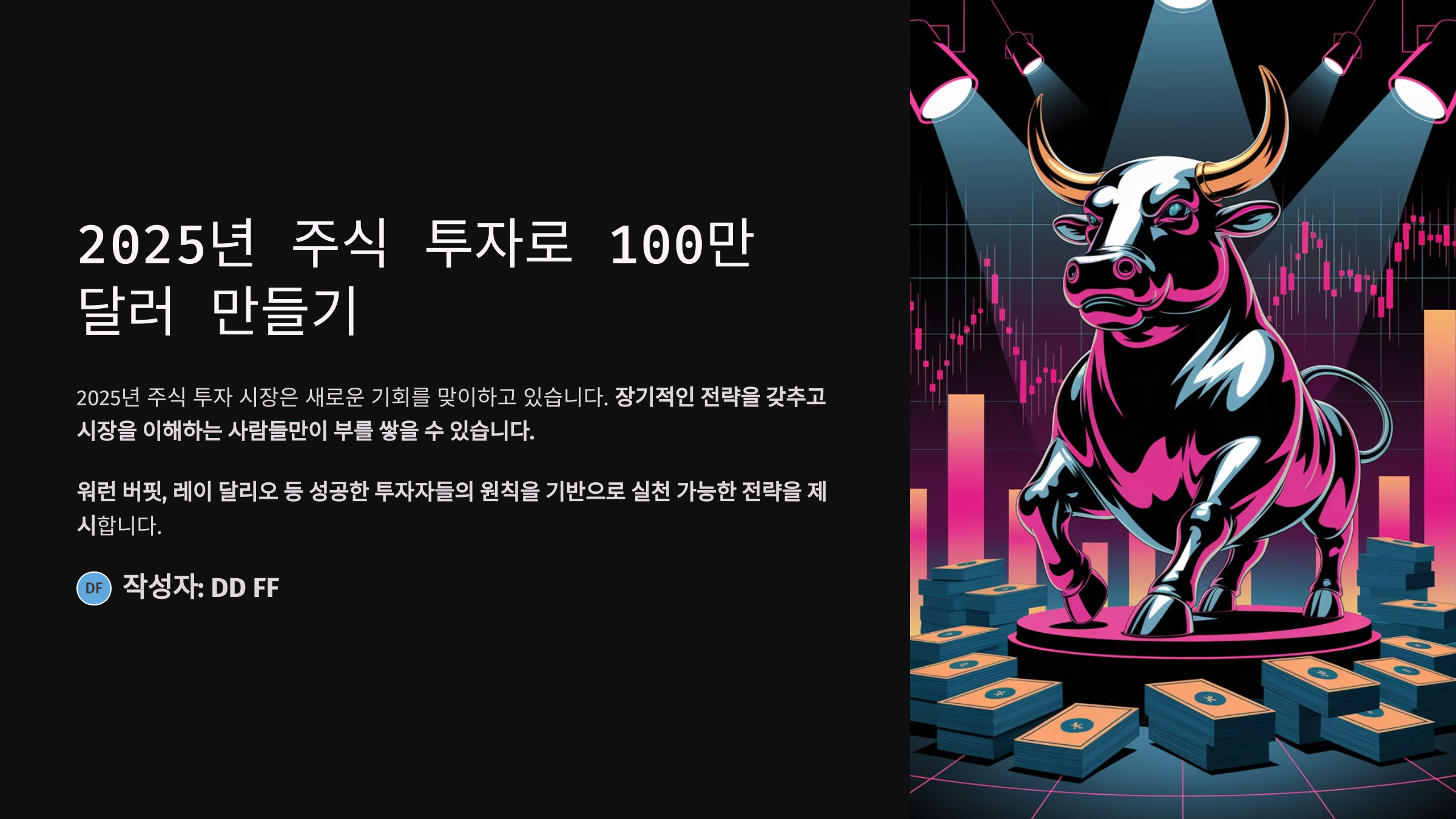 이번 글에서는 2025년 주식 투자로 100만 달러를 만드는 방법을 알아보겠습니다. 워런 버핏, 레이 달리오 등 성공한 투자자들의 원칙을 기반으로 실천 가능한 전략을 제시하니, 끝까지 읽고 실행해 보세요!