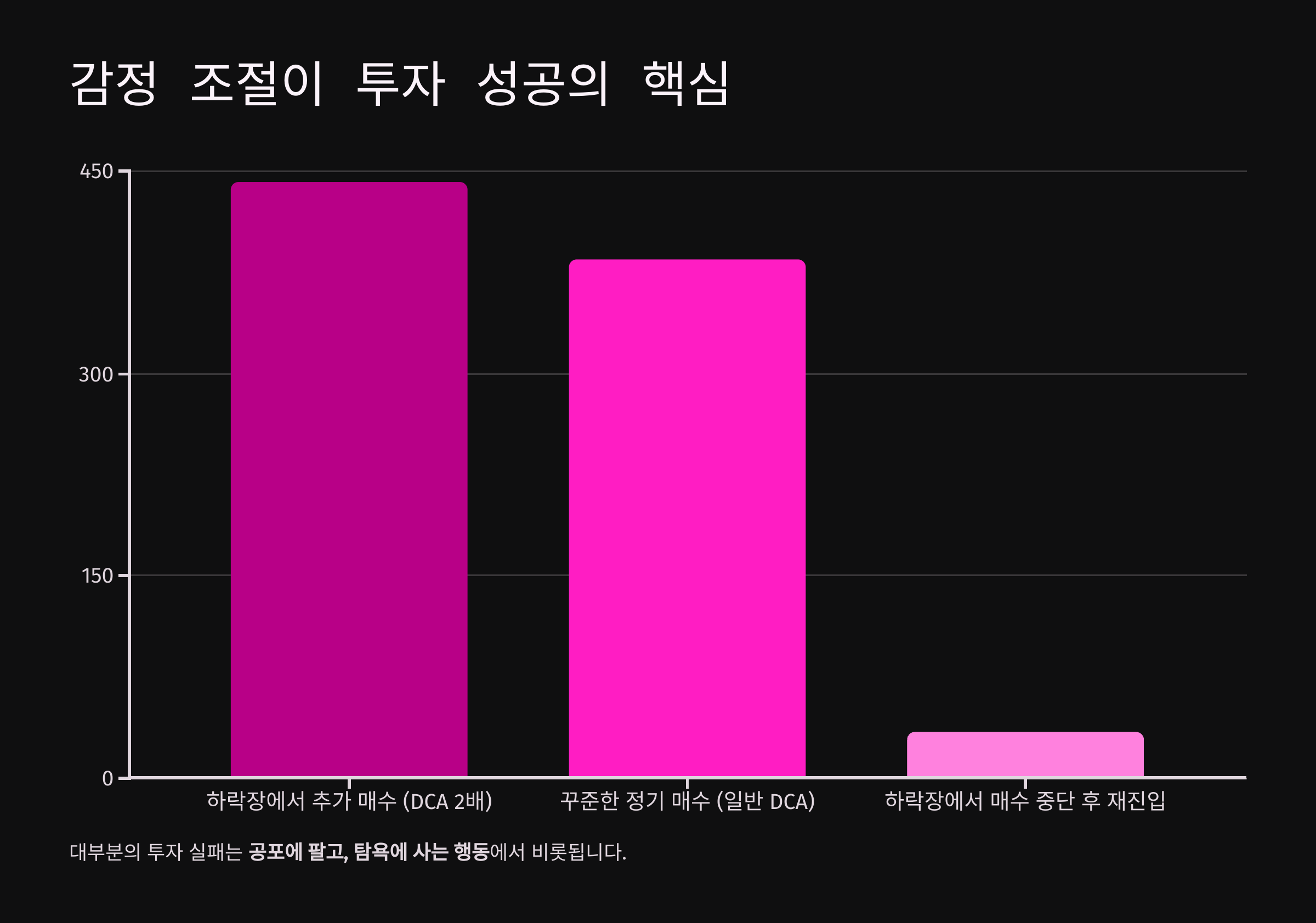 대부분의 투자 실패는 공포에 팔고, 탐욕에 사는 행동에서 비롯됩니다. 이를 방지하려면 DCA(정기 매수) 전략과 감정 조절 방법을 활용해야 합니다.