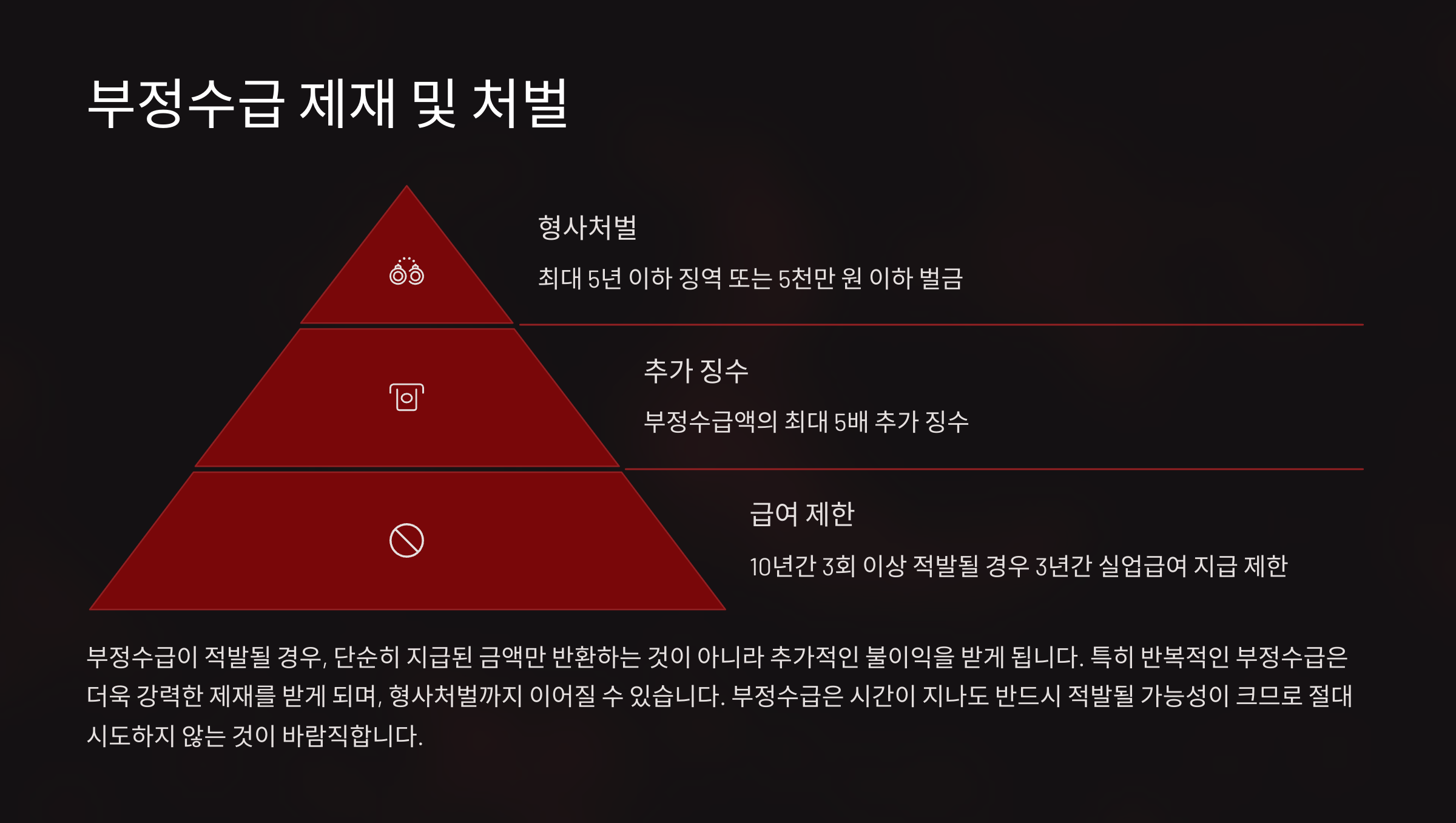 - 10년간 3회 이상 적발될 경우 3년간 실업급여 지급 제한