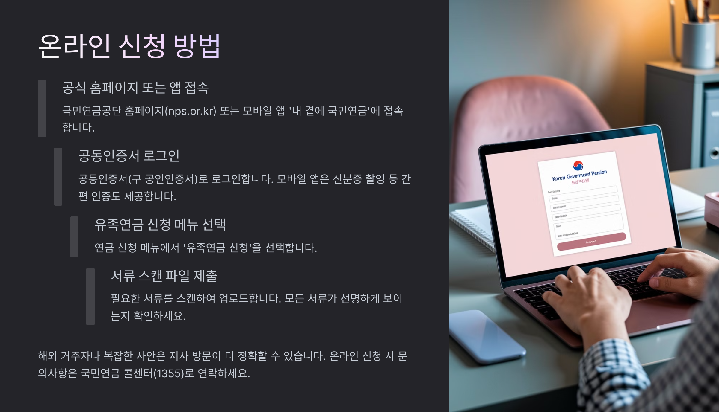 3. 유족연금 신청 방법 요약