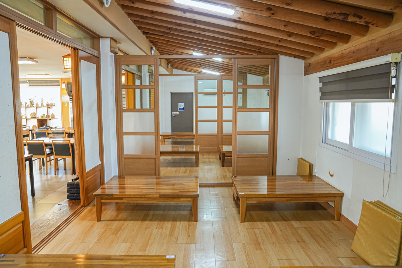 식사 공간은 넓고 깔끔하게 정돈되어 있어, 프라이빗하게 식사를 즐기기에 좋습니다.
