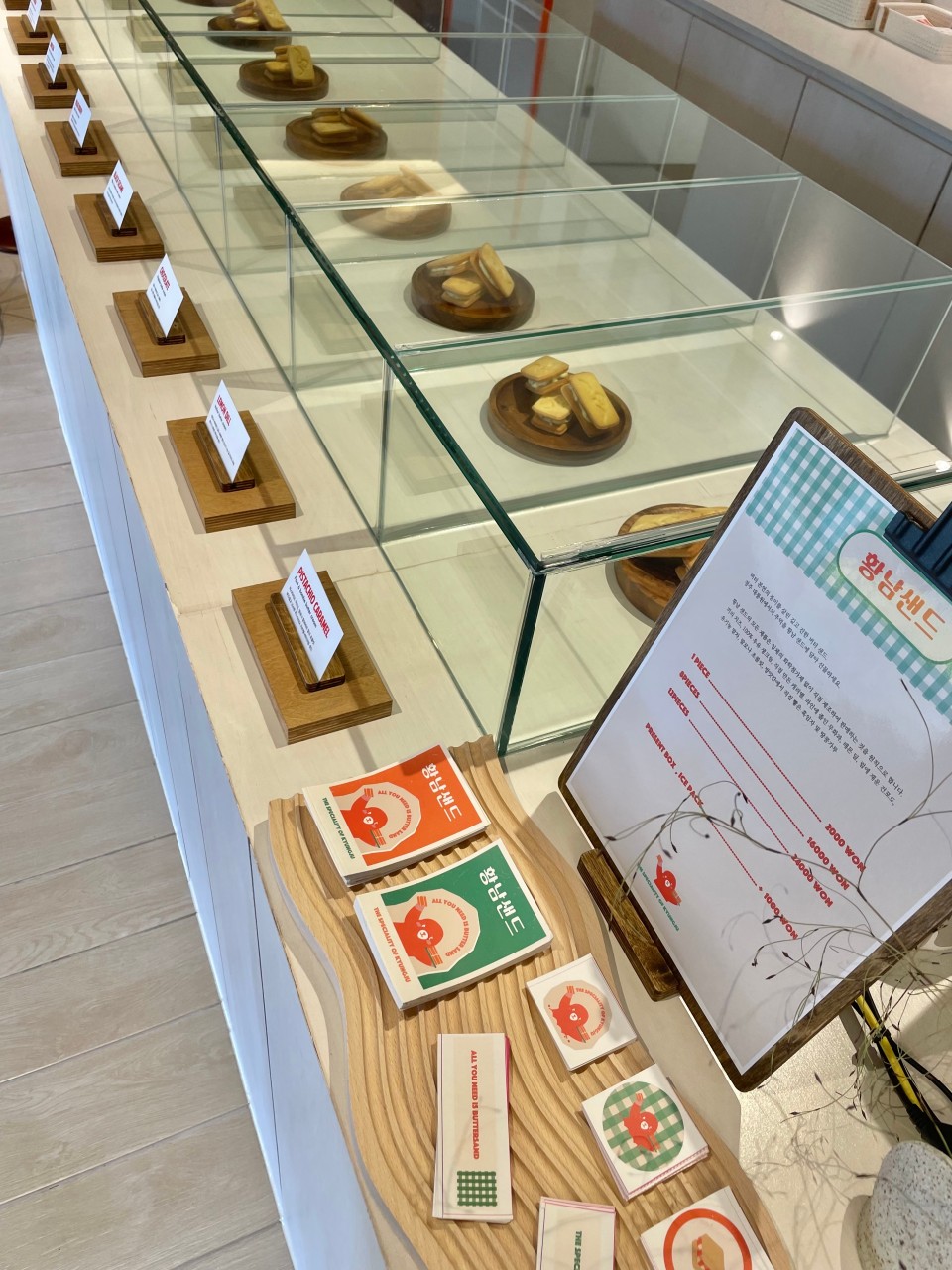 작은 간판과 귀여운 패키지 박스 디자인이 눈에 띄며,