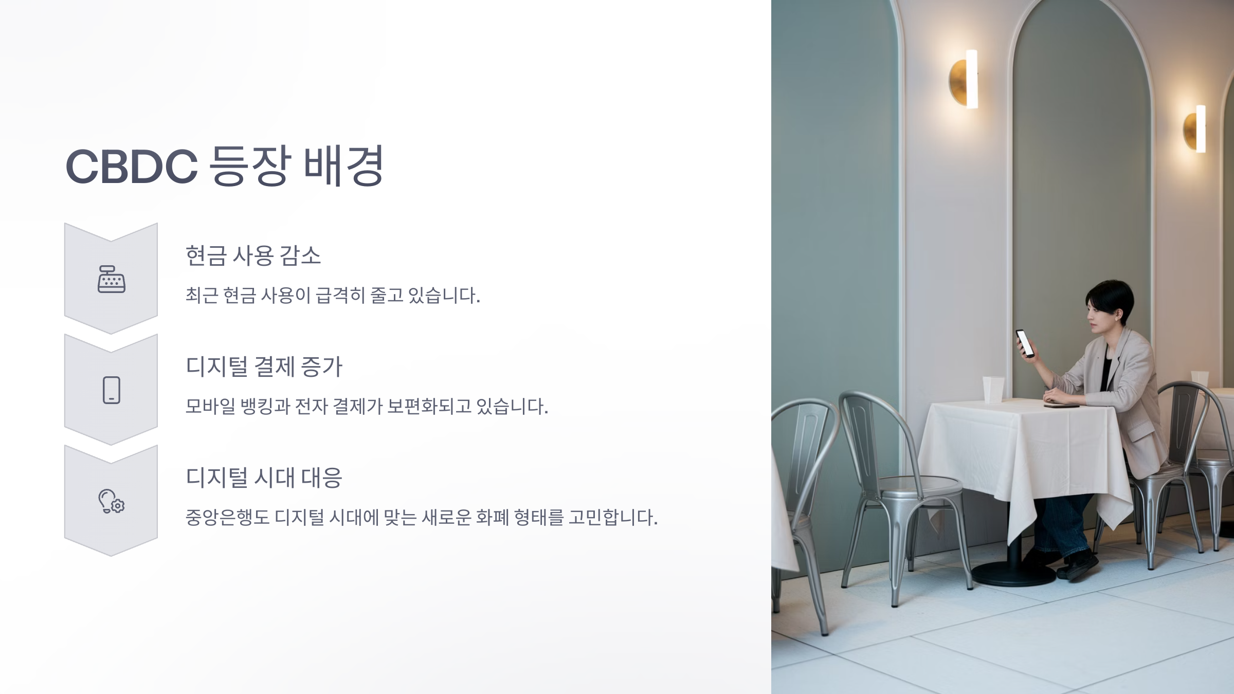 - 현금 사용 감소: 최근 사람들은 지갑보다 스마트폰을 더 자주 꺼내죠. 현금 사용이 줄어드는 현실 속에서 국가가 직접 관리하는 디지털 화폐가 필요해졌습니다.