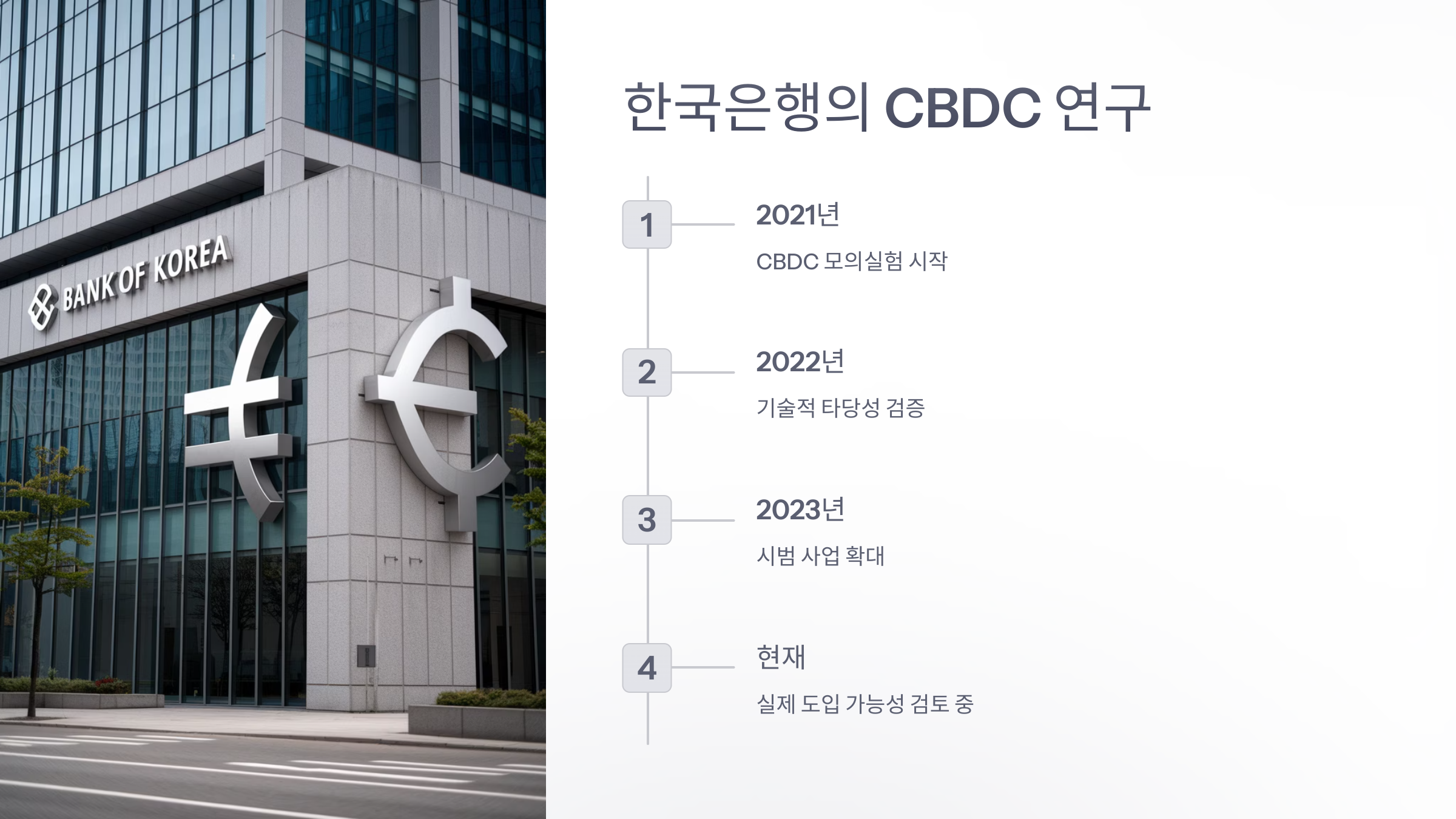 ✅ 참고 예시: 한국은행은 ‘디지털 원화’라는 이름으로 CBDC 연구를 활발히 진행 중이며, 2025년까지 시범 사업을 추진하고 있습니다.