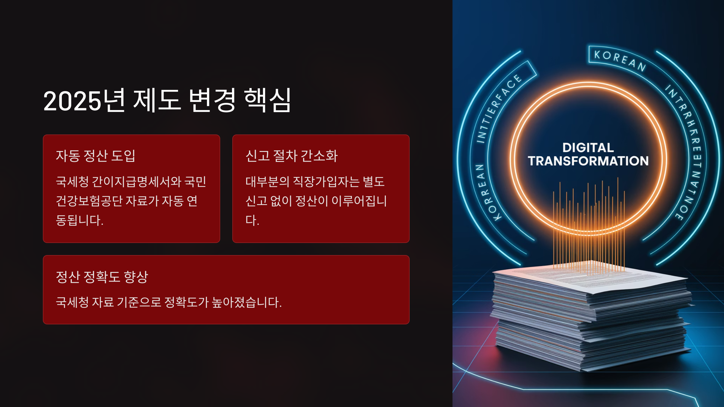 | 정산 정확도 | 신고 오류 가능성 존재 | 국세청 자료 기준으로 정확도 상승 |