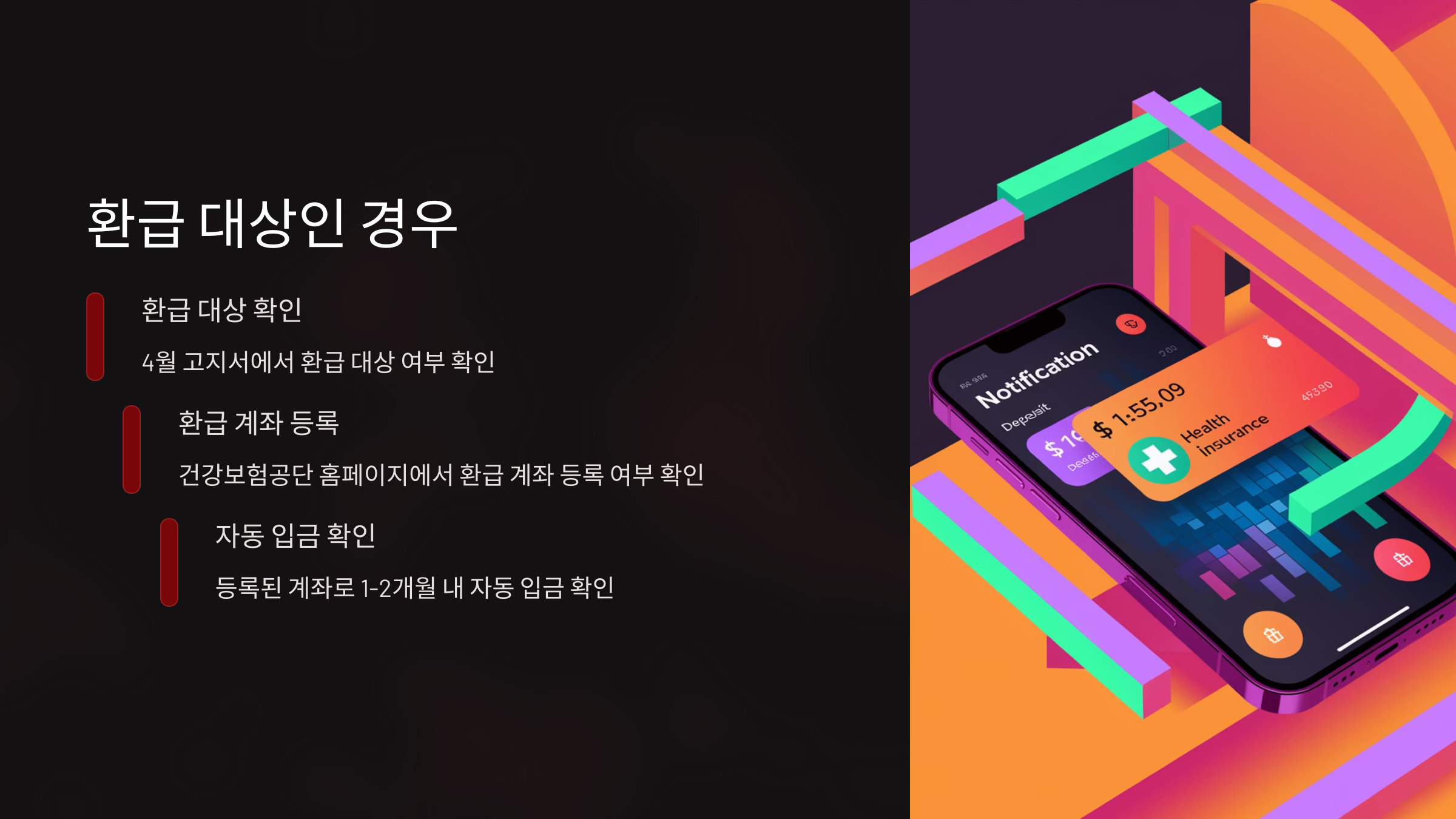 별도의 환급 신청은 필요하지 않습니다. 국민건강보험공단은 2025년 4월 고지서 기준으로 환급 대상을 안내하고, 등록된 계좌로 자동 입금해줍니다. 계좌 등록이 되어 있지 않거나 예금주 정보가 다르면 지연될 수 있으니, 홈페이지에서 환급계좌를 꼭 확인하세요.