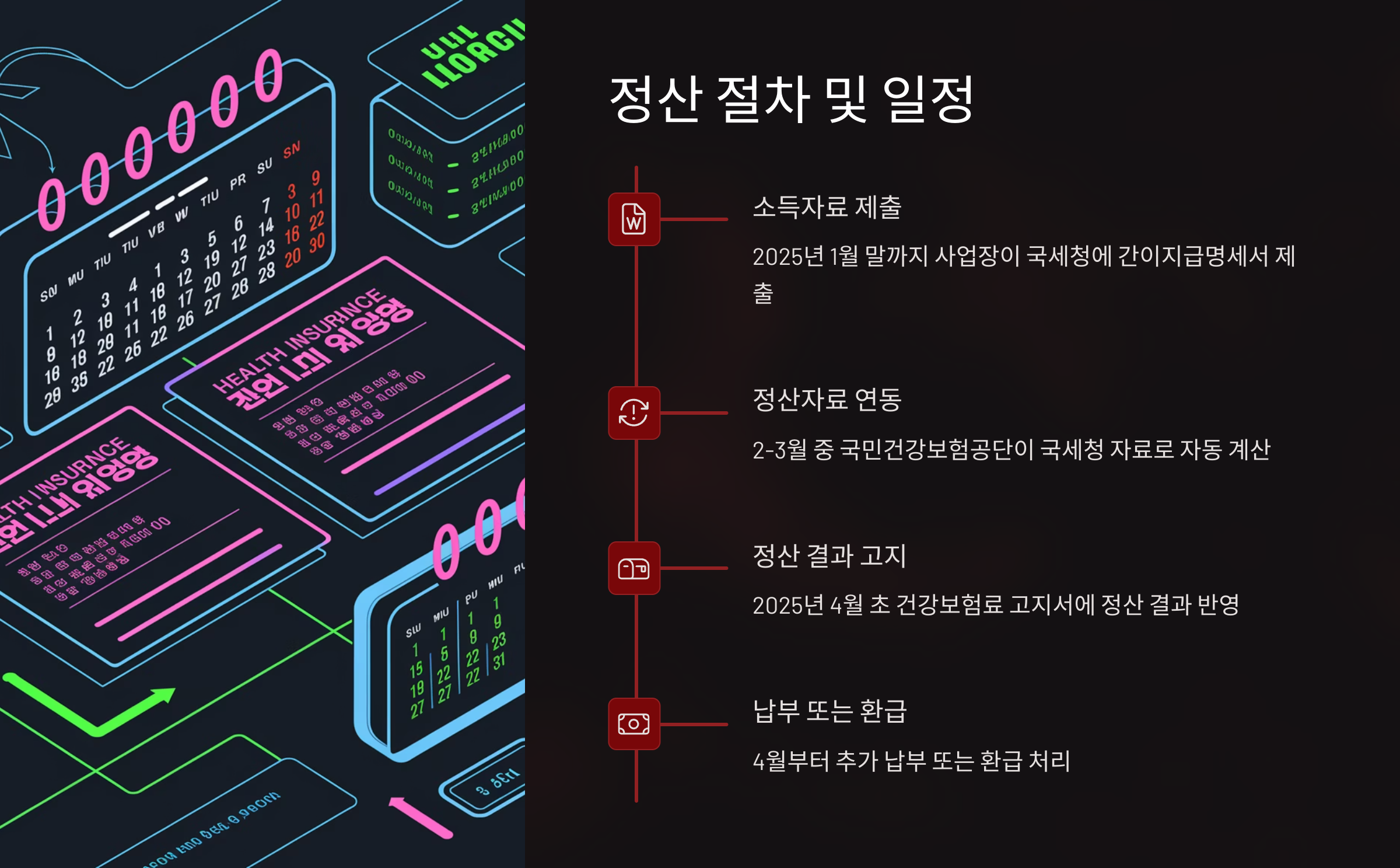 2025년 건강보험 연말정산은 제도가 자동화되면서 이전보다 간단해졌지만, 언제, 어떻게 정산이 이루어지는지 정확히 아는 것이 중요합니다. 잘못 이해하면 정산 결과를 놓치거나, 분할 납부 신청 기한을 놓쳐 부담이 커질 수 있죠