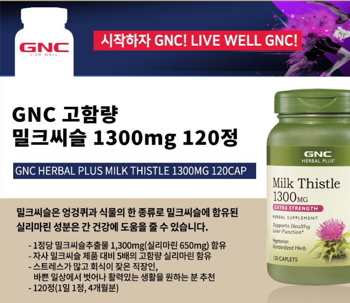 간 건강에 탁월한 효능을 제공하며, iHerb에서 판매 1위 제품으로 실리마린 함량이 높습니다.