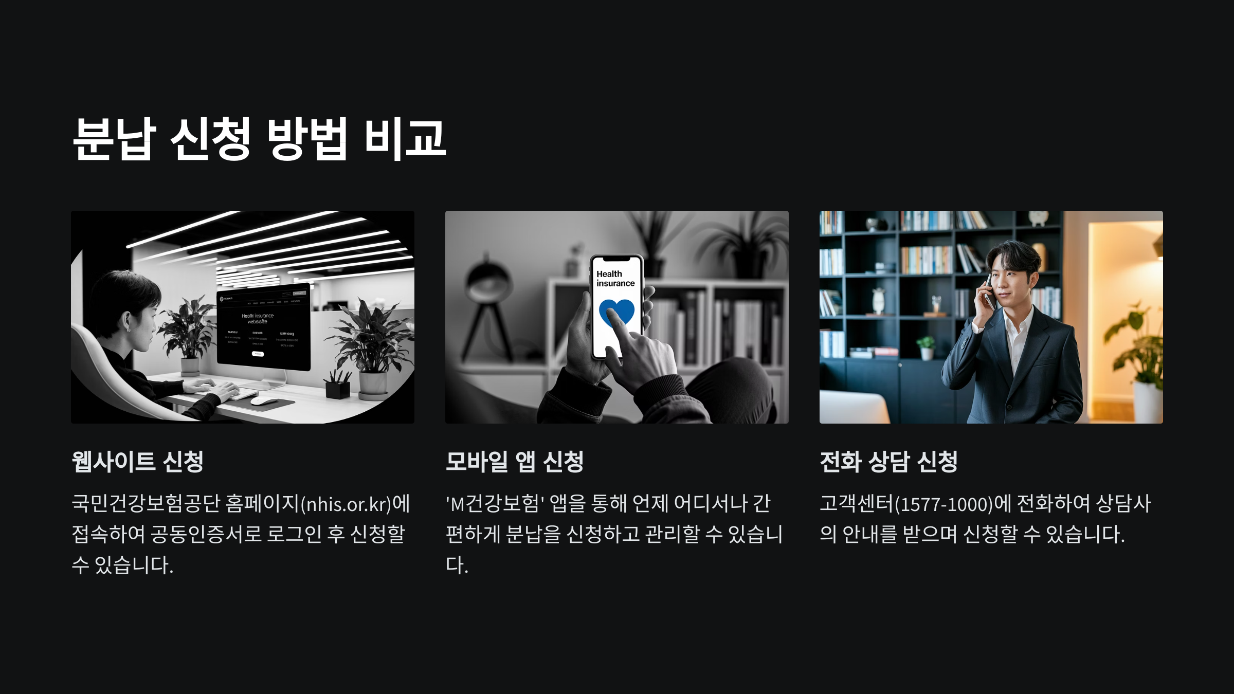 이럴 땐 공단 홈페이지나 고객센터를 통해 바로 전환이 가능합니다. - 연체료, 이자 등 추가 비용 주의