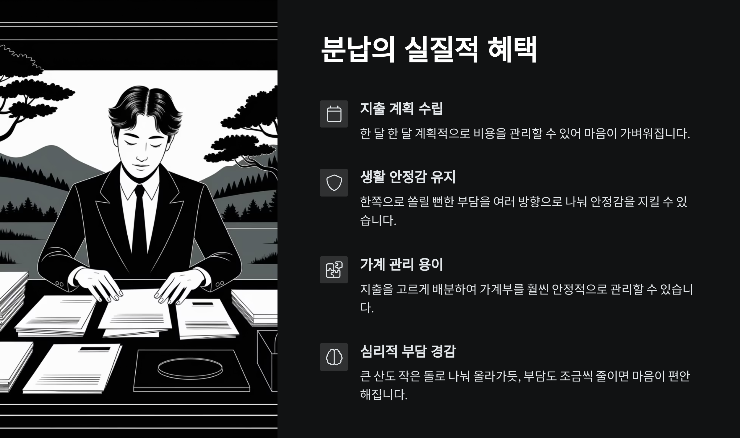 이런 때 분납을 선택하면, 한 쪽으로 쏠릴 뻔한 부담을 여러 방향으로 나눠