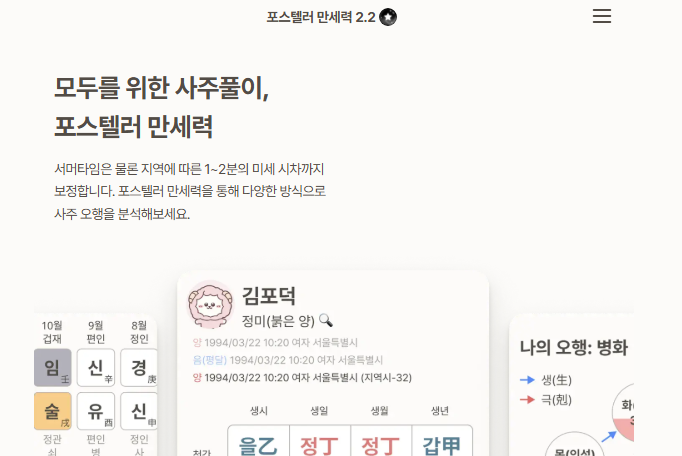 | 정통 명리학 기반 깊은 풀이 | 사주풀이도우미, 포스텔러 만세력 |