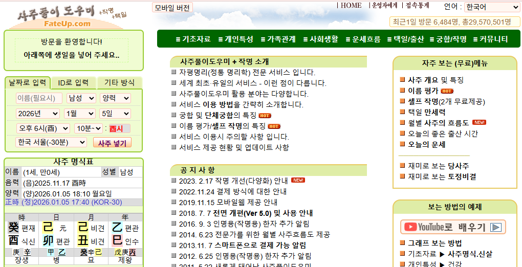 - 장점: 기본 사주풀이 무료, 가입 없이 이용 가능