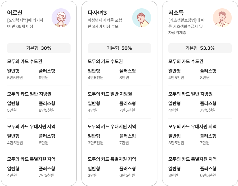 모두의 카드는 기준금액 초과분을 100% 환급해주는 구조로 변경되었습니다.