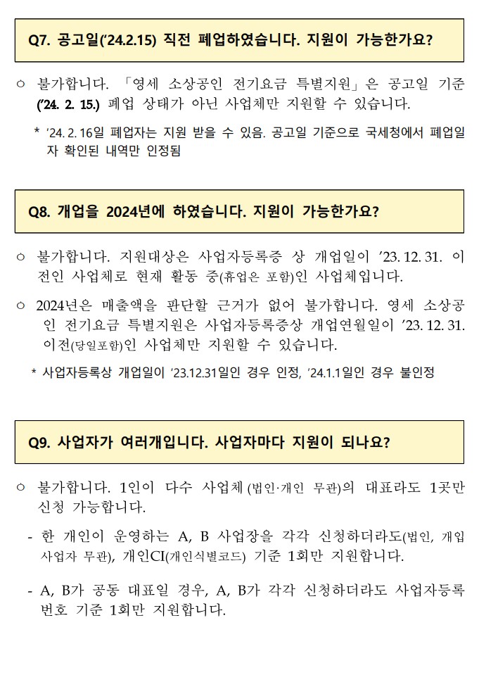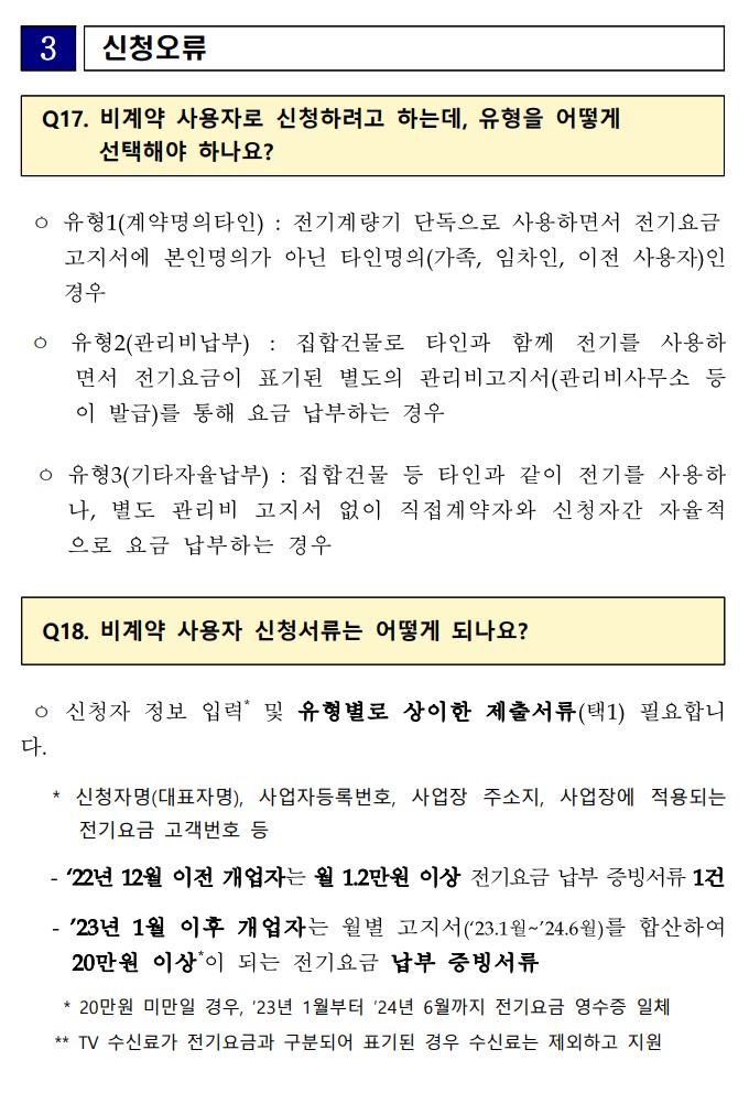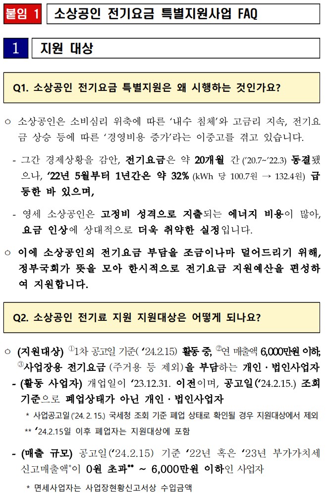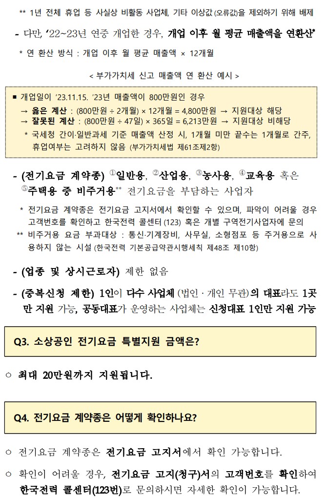 소상공인 전기요금 특별지원kr 신청 자격은 다음과 같습니다