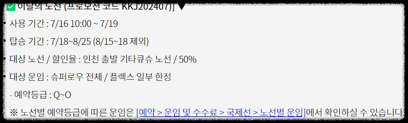 3) 탑승기간: 7월 18일(목) ~ 8월 25일(일) *8월 15일 ~ 18일 제외*