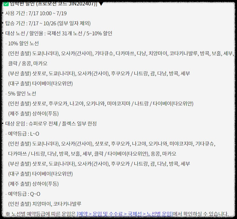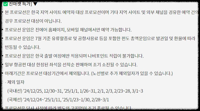 - 해당 프로모션은 진에어 홈페이지 회원 대상으로 진행됩니다.