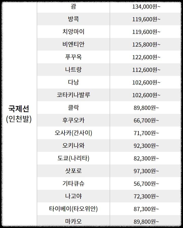 - 항공 스케줄은 정부인가 조건이며, 예고 없이 변경될 수 있습니다.