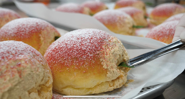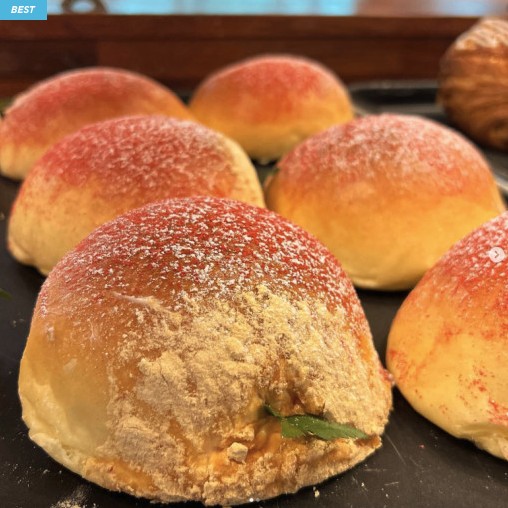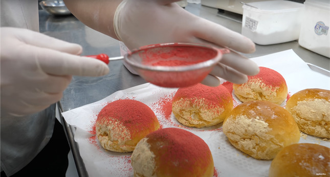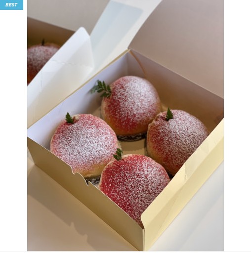 4. 시각적인 매력: 복숭아빵은 딸기 파우더, 인절미 가루, 슈가파우더로 장식되어 시각적으로도 매력적입니다. 이러한 조합이 복숭아빵을 더욱 특별하게 만듭니다.