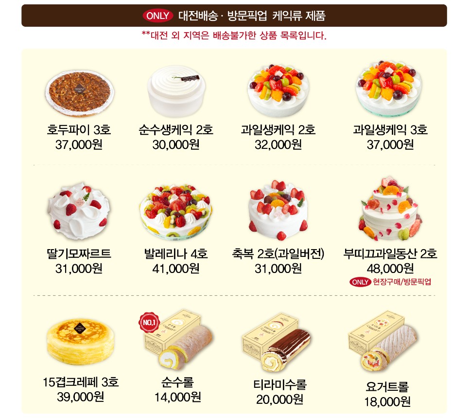 성심당 웹사이트에서 배달 가능 지역 확인하고,